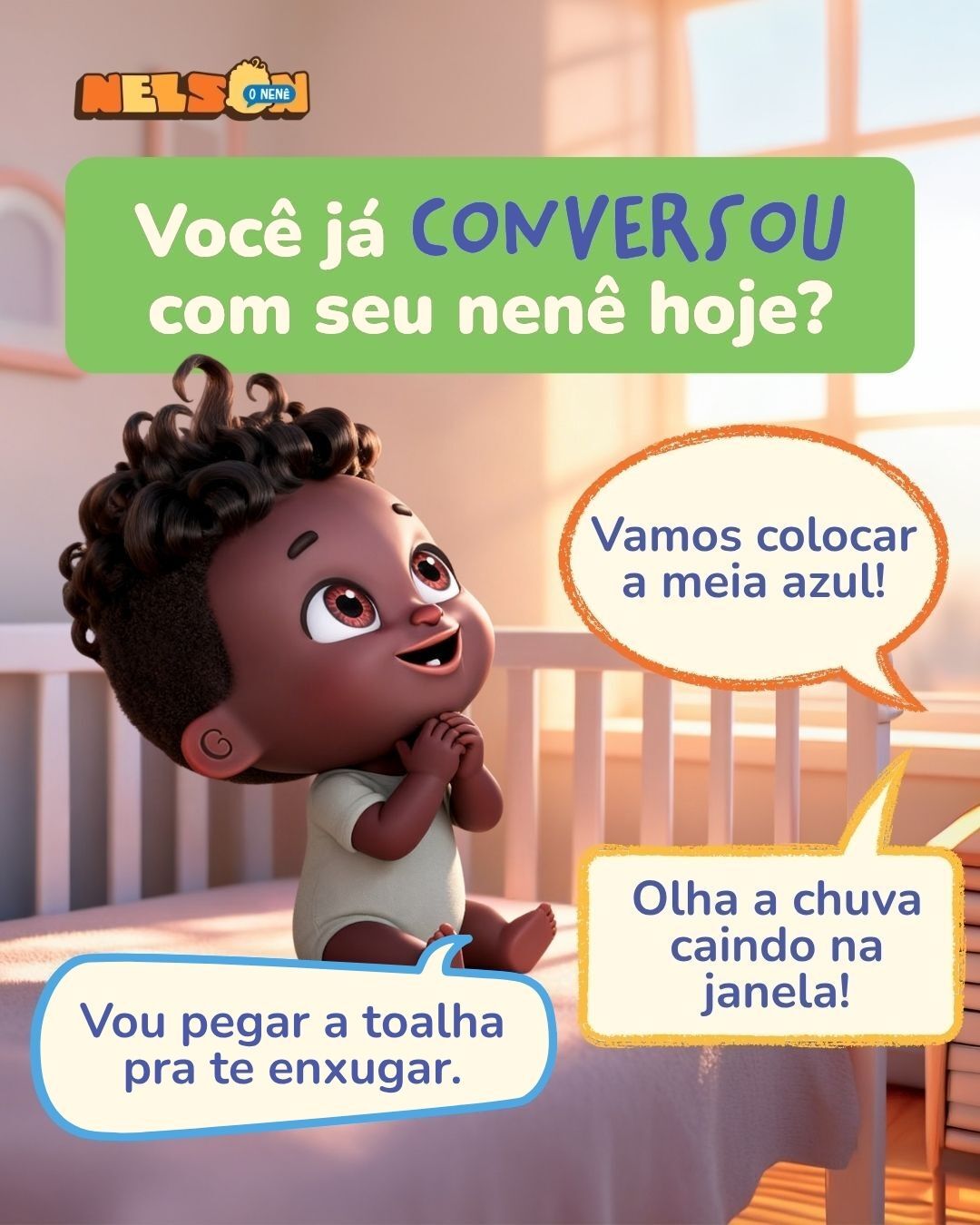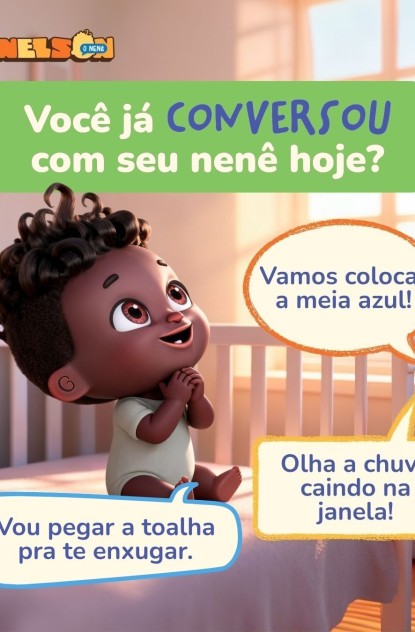 Muita gente acha que, se ainda não falamos, não precisam conversar com a gente ou explicar as coisas. Mas é justamente o contrário! Cada palavra dita durante a troca de roupa, o banho ou o almoço está ajudando a aumentar nosso vocabulário e as conexões que nossa cabecinha faz.