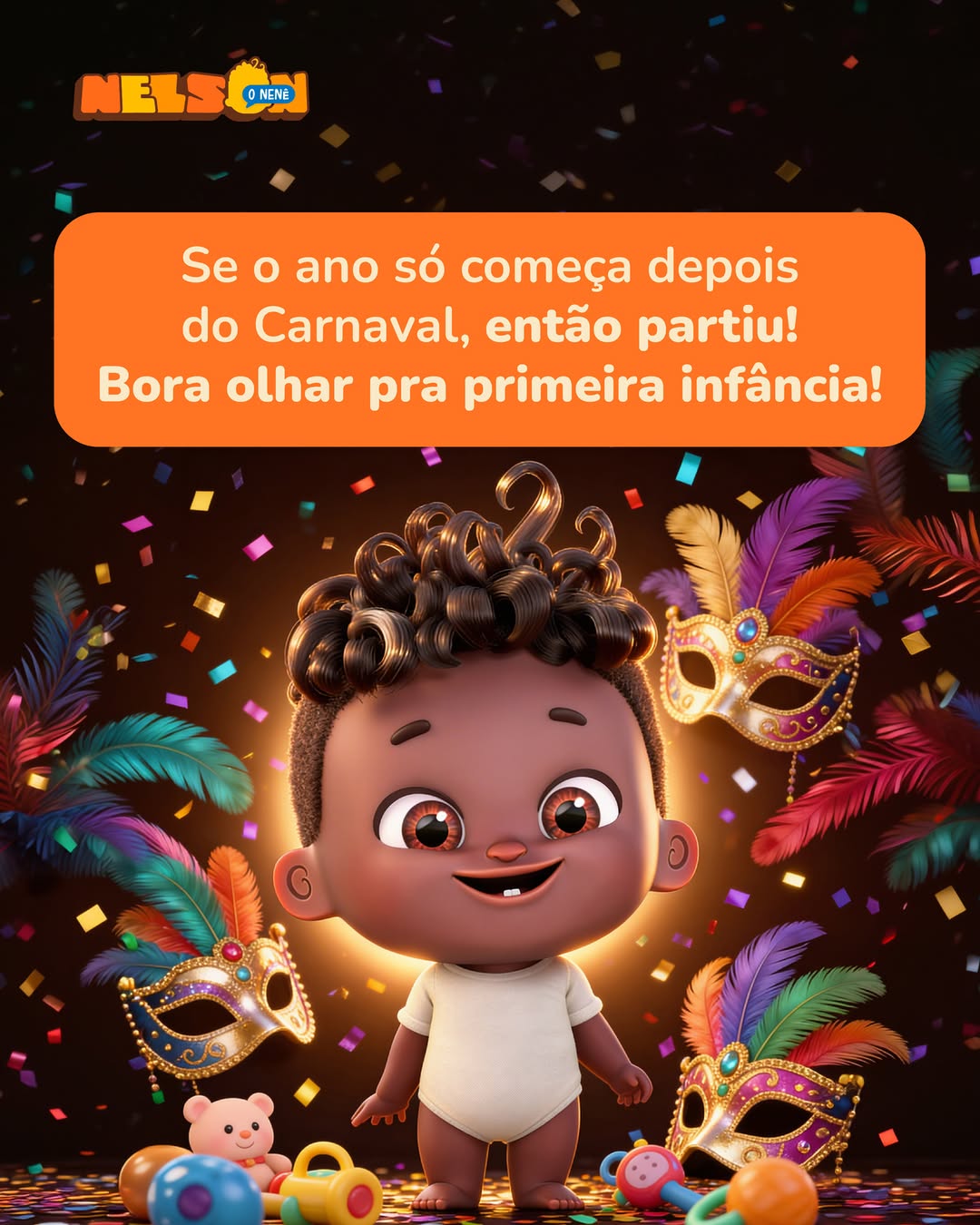Ainda tem brilho, confete e serpentina pra todo lado, mas eu já venho logo chamando geral: a primeira infância precisa de todo mundo! Cuidar da nenezada, conversar bastante, manter a vacinação em dia, garantir comida no prato e dar amor, muito amor! Bora nessa, ex-nenê? Bora de mãos dadas?