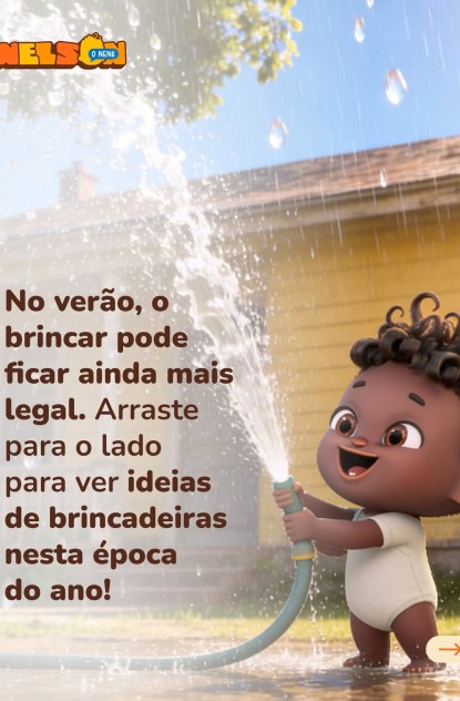 Verão e férias são uma ótima combinação para estar mais perto da nenezada e brincar juntinho com a gente! Vem ver algumas das minhas brincadeiras favoritas pra esta época do ano – já posso ir lá brincar de alguma delas agora? É só cuidar dos horários de muito sol e se jogar na farra com os pequenos. Bora aproveitar o verão e brincar com a gente, ex-nenê!